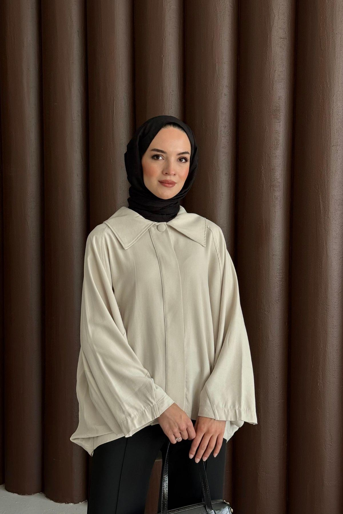 Geniş Yakalı Modal Trenç Taş