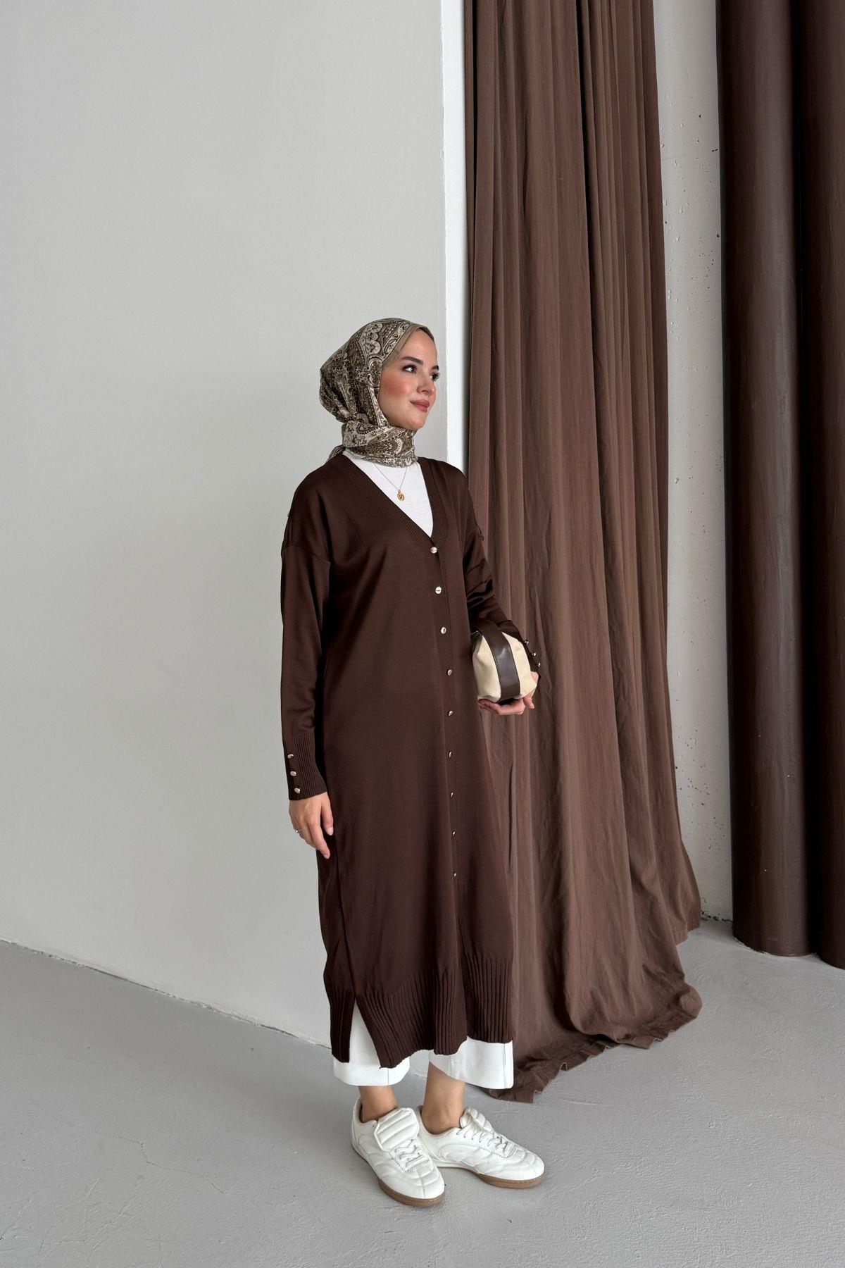Premium Uzun Triko Hırka Kahverengi